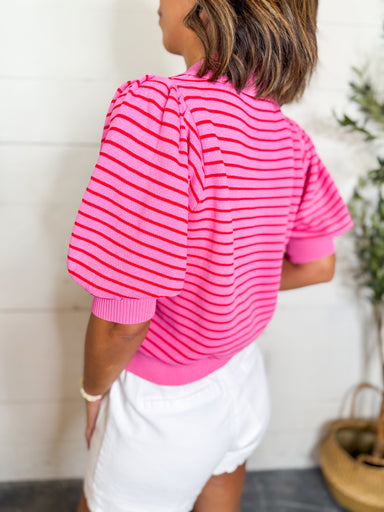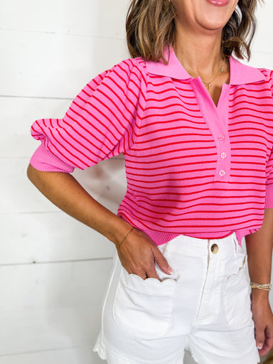 Classic stripes with a chic twist. This long sleeve knit top features a contrast split V-neck collar and ribbed cuffs for a polished finish. Lightw...