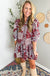 Charming and effortless, this burgundy print mini dress features a tiered silhouette that adds playful movement to every step. The rich hue and delicate print create a flattering, feminine look, while the lightweight fabric keeps it comfortable for all-day wear. Perfect with boots, sandals, or heels for any occasion.