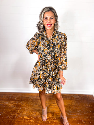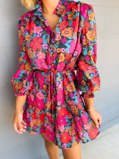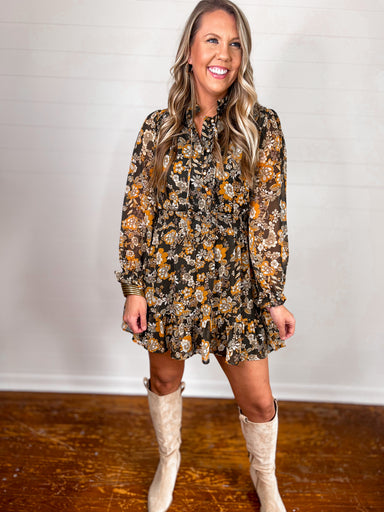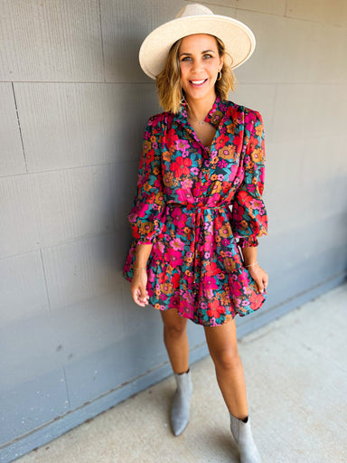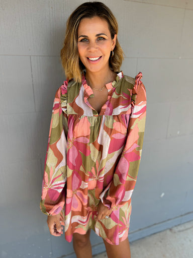 Bring a touch of autumn charm to your wardrobe with the Fall Floral Tunic Mini Dress. Designed in a relaxed tunic silhouette, this dress features a...