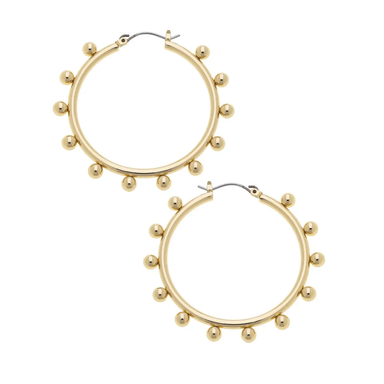 The Katie Ball Bead Hoop Earrings offer a playful take on classic hoops. Their shiny gold bead accents create a stylish and versatile design. DETA...