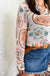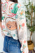 Relaxed fit chiffon button-up shirt with western-inspired postcard illustrations in soft pastel tones