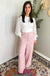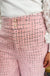 Chic and timeless, the Pink Tweed Pant brings a touch of classic elegance to your everyday wardrobe. Crafted from textured tweed fabric, this pant features a tailored front closure, functional pockets, and a flattering wide-leg silhouette. Perfect for dressing up with a blouse and heels or styling casually with a knit top, it’s a versatile statement piece for any season.