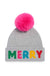 One Size, Made from acrylic, nylon, and polyester, Turn up the cheer with the “Merry” Beanie, your new favorite cold-weather statement piece. This cozy knit features bold, multicolored lettering and a bright faux fur pom that brings instant joy to any winter outfit. The cuffed design keeps your ears snug, while the playful vibe spreads smiles everywhere you go. Whether you're heading out for holiday shopping or sipping cocoa with friends, this beanie brings the merry wherever you wear it.