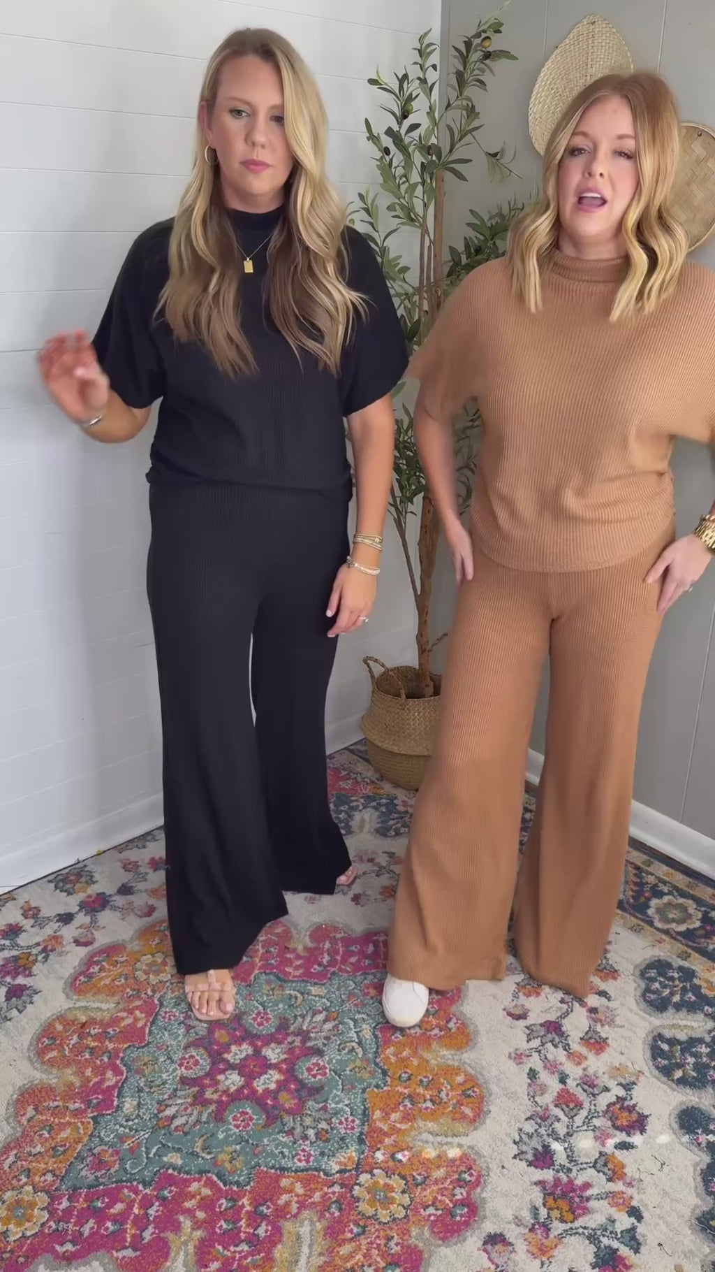 Cozy meets cool in this playful sweater set featuring a mock neck short sleeve top with flattering side shirring and comfy long pants. The top’s relaxed fit and stretchy fabric make it perfect for playful days, while the pants’ tailored waist and generous inseam ensure all-day ease. Whether lounging or stepping out, this set brings effortless style with a fun twist. Perfect for mixing comfort and charm in one chic outfit! 50% Rayon, 28% Polyester, 22% Nylon