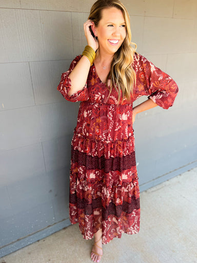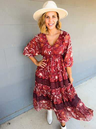 The Burgundy V-Neck Peplum Top brings a timeless, feminine touch to your wardrobe. Featuring a flattering V-neckline and a cinched waist that flow...