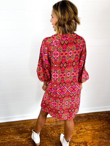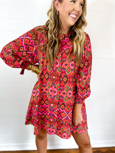 Bright, breezy, and full of charm, this sleeveless mini dress features a playful stripe pattern with multicolor band accents along the button‑fro...