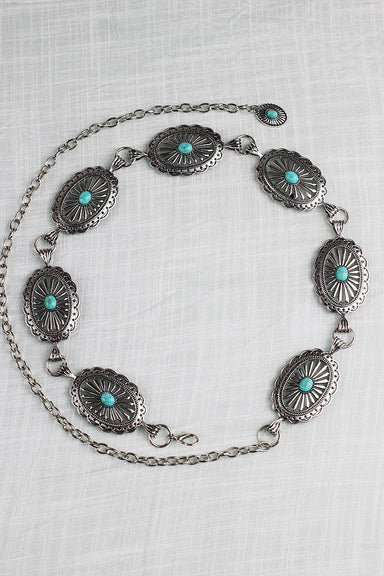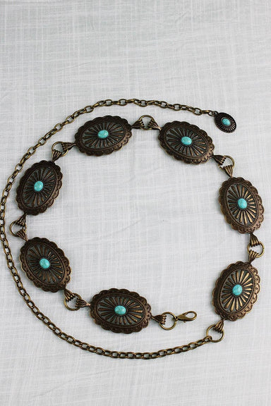 Embrace timeless frontier style with this handcrafted vintage belt, featuring natural turquoise stones set in an antique silver-tone buckle. A perf...