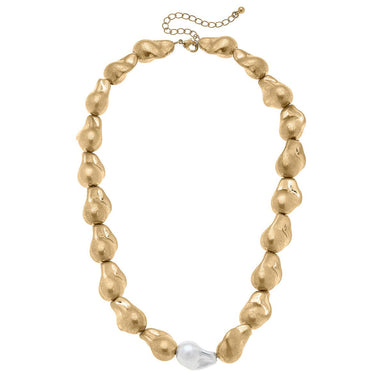Add the perfect touch of vintage elegance to your outfit with our Lulu Baroque Bead & Pearl Necklace. The worn gold and ivory beads create a be...