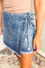 Meet your new denim favorite! This Casual Modern Denim Wrap Skort blends effortless style with everyday comfort. Designed in a soft light-to-medium blue wash with gentle fading, it gives that perfectly worn-in feel. The flattering A-line silhouette features an overlapping wrap front for an asymmetrical look, finished with a relaxed side tie that cinches beautifully at the waist. The mini length and raw frayed hem give it that trendy, laid-back finish — cute, comfy, and so easy to style.