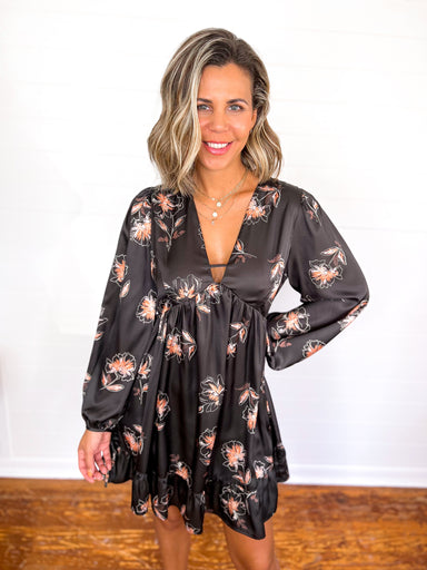 Bring a touch of autumn charm to your wardrobe with the Fall Floral Tunic Mini Dress. Designed in a relaxed tunic silhouette, this dress features a...