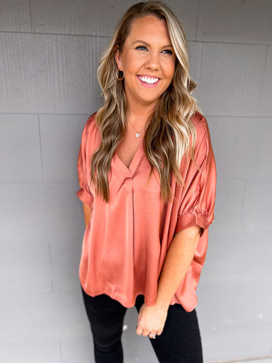 The Burgundy V-Neck Peplum Top brings a timeless, feminine touch to your wardrobe. Featuring a flattering V-neckline and a cinched waist that flow...