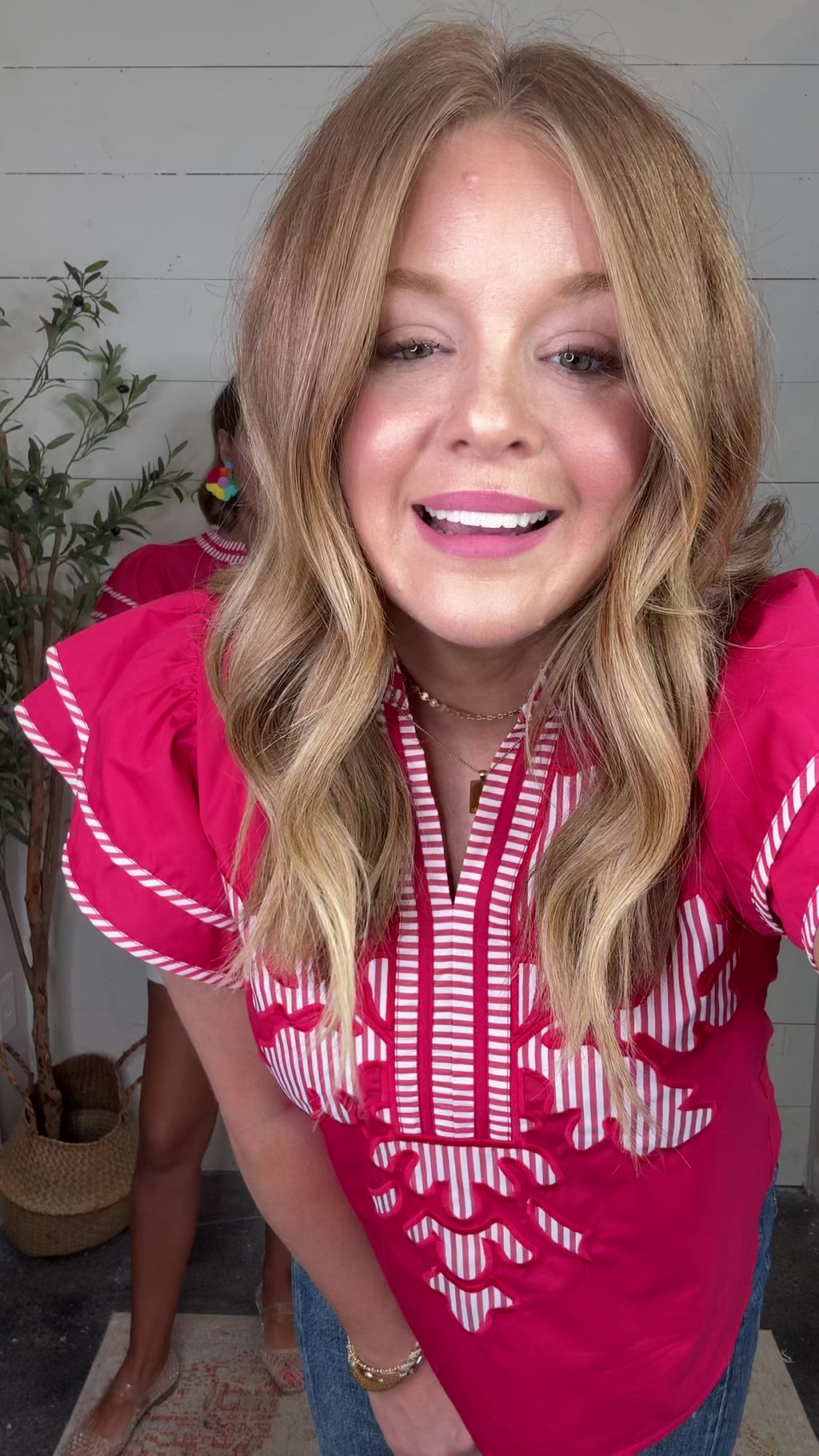 Chevron down icon Chevron down icon Zoom icon Click to expand Tap to zoom V-Neck Tiered Flutter Sleeve Top On Sale $52.95 | / Small - $52.95 Medium - $52.95 Large - $52.95 Size Small Medium Large 1 2 3 4 5 6 7 8 9 10+ Quantity Chevron down icon Quantity Add to cart Spinner icon This item is a deferred, subscription, or recurring purchase. By continuing, I agree to the cancellation policy and authorize you to charge my payment method at the prices, frequency and dates listed on this page until my order is fulfilled or I cancel, if permitted. noun-checkmark-circle-1939611 Only 1 left! noun-shop-4255622 Store pickup available Notify me when back in stock Email address Email me when available Fit: True to size Small: Fits sizes 2-4 Medium: Fits sizes 6-8 Large: Fits sizes 10-12 Model Specs: Cindy: 5'6", wearing a size Small. Caitlin: 5’6”, wearing a size Medium.