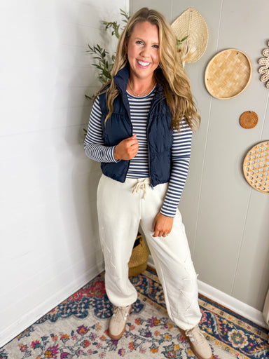 Effortlessly upgrade your wardrobe with this long sleeve crew neck top featuring classic stripes. Versatile for layering or standalone wear, it pai...