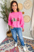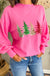 - Ribbed crew neckline women's knit sweater - Casual drop shoulder - Long balloon sleeve ribbed hem - Pullover style - Soft touch - Five Christmas Tree embellishment sequin detail - Comfortable, relaxed fit - Lightweight and breathable for holiday and Christmas casual wear -