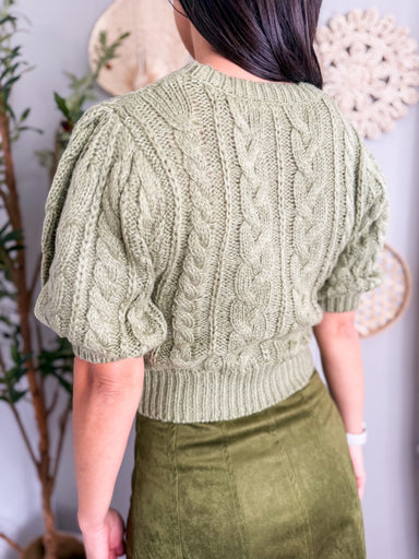 Cozy meets chic in this Olive Puff Sleeve Cable Knit Sweater. Designed with soft cable knit detailing and subtle puff sleeves, it offers a perfect ...