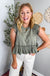 Spice up your wardrobe with this fun Sage Side Lace Trim Ruffle Hem Top! This sleeveless cutie features a ribbed round neckline and charming lace trim along the sides. The exposed seams add a touch of edgy detail, while the ruffled bottom hem creates a flirty finish. Slightly cropped for that perfect summer vibe and crafted from 100% cotton for all-day comfort. Perfect for mixing and matching with your favorite bottoms!