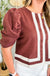 Timeless and effortlessly chic, the Brown & Ivory Stripe Detail Puff Sleeve Blouse brings a touch of classic elegance to your wardrobe. Featuring delicate vertical stripes in warm brown and ivory tones, this blouse is beautifully detailed with softly gathered puff sleeves that add a subtle feminine flair. The lightweight fabric drapes gently for a flattering fit, making it perfect for both casual days and polished office looks.