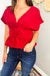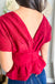 Burgundy V-Neck Peplum Top