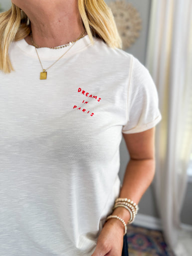 Capture the magic of the City of Light with the Dreams In Paris Tee. Crafted from soft, breathable fabric, this tee features a charming Paris-inspi...