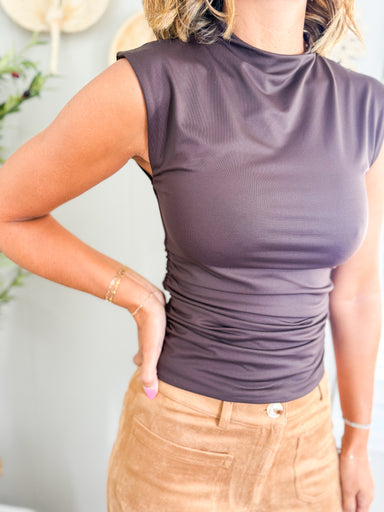 Effortlessly chic with a cozy twist! This top features a sleek funnel neckline and extended sleeves for a modern, relaxed vibe. Lightweight and eas...